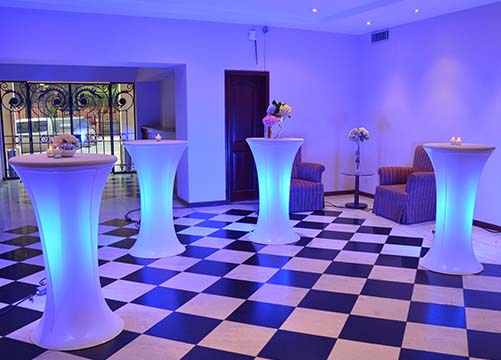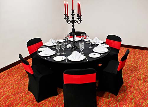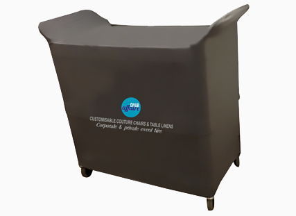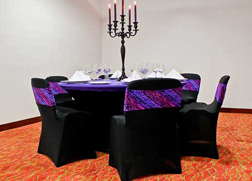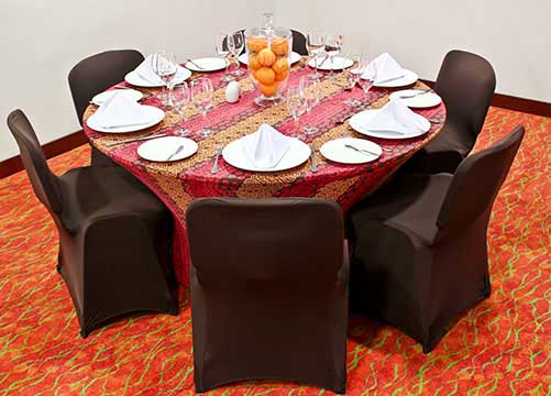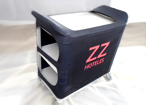 Bandejeros, cobertores de Room service, cubre cajones y más objetos, son transformados con lycra spandex para lucir adecuadamente en cada ocasión.